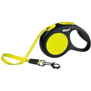FLEXI Guinzaglio Retrattile New Neon M - Fettuccia 5 Metri, Nero e Giallo Neon, Fino a 25 kg, Ergonomico e Riflettente