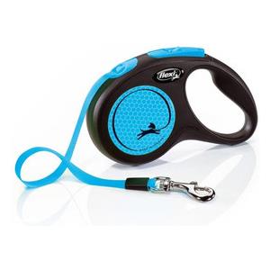 FLEXI Guinzaglio Retrattile Automatico New Neon 5 m Blu e Nero per Cani fino a 15 kg con Componenti Riflettenti