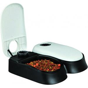 Trixie TX2 Distributore Automatico di Cibo per Cani e Gatti - 2 Pasti da 300 ml, Timer Programmabile, Plastica, Colore Bianco e Nero