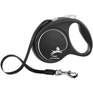 FLEXI Guinzaglio Retrattile Black Design S - Fettuccia 5m, fino a 15kg, Ergonomico e Sicuro