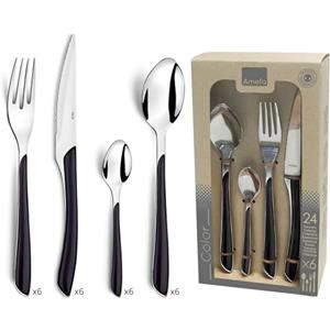 Amefa Set di 24 Posate in Acciaio Inossidabile Nero - Include 6 Cucchiai, 6 Forchette, 6 Coltelli e 6 Cucchiaini
