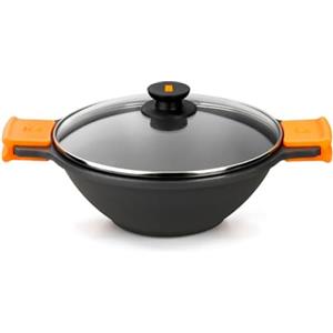 BRA Efficient Wok 32 cm - Padella Antiaderente in Alluminio Pressofuso con Coperchio in Vetro, Adatta per Induzione, Rivestimento Teflon Platinum Plus