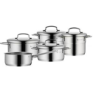 WMF Diadem Plus Set di Pentole 9 Pezzi in Acciaio Inox Cromargan 18/10 con Coperchi in Vetro, Adatto per Induzione