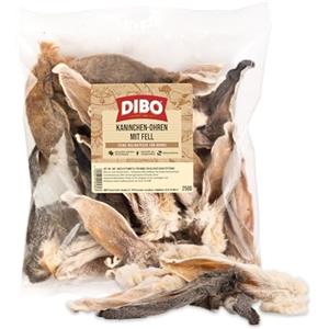 DIBO Orecchie di Coniglio con Pelliccia - Snack Naturale Essiccato per Cani, 250 g, Gluten-Free e Ideale per la Pulizia dell'Intestino