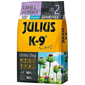 JULIUS K-9 Crocchette Secche per Cuccioli e Junior con Agnello e Erbette - 10 kg, Senza Glutine