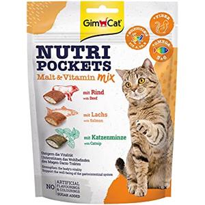 GimCat Nutri Pockets 150 g - Snack Croccante con Ripieno Cremoso al Mix Malto e Vitamine per Gatti