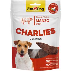 GimDog Charlies Jerkies Manzo 70g - Snack per Cani Altamente Proteici, Senza Zuccheri e Cereali