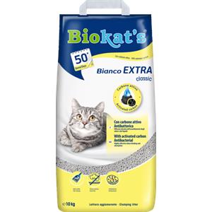 Biokat's Lettiera Bianco Extra Classic 10kg - Agglomerante in Argilla Naturale con Carbone Attivo per Elevato Assorbimento di Odori e Liquidi