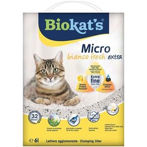 Biokat's Lettiera Agglomerante Micro Bianco Fresh Extra 6L - Argilla Naturale, Assorbimento 250%, con Carbone Attivo