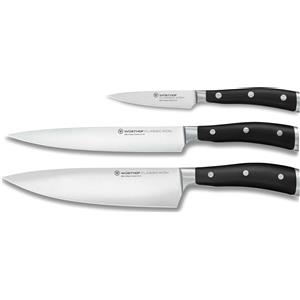 WÜSTHOF Classic Set di 3 Coltelli da Cucina in Acciaio Inossidabile con Manici in Plastica Nera