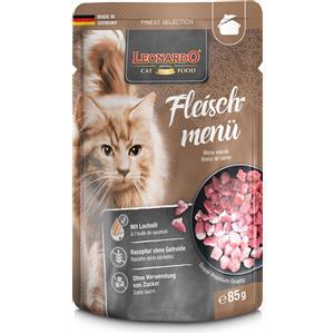 Leonardo Sacchetto salvafreschezza [16x85g Menu di Carne] | Cibo umido senza cereali per gatti | Alimento completo umido in busta monoporzione