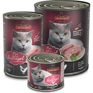 Leonardo Cibo umido [6x200g Pura carne di pollame] | Cibo umido senza cereali per gatti | Alimento completo umido in lattina
