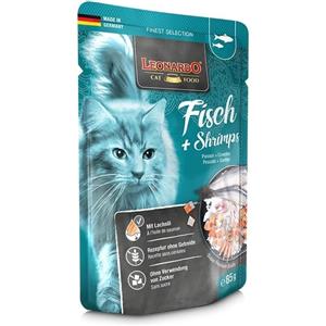 Leonardo Cat Food Finest Selection Cibo Umido per Gatti 85 g - Pesce e Gamberetti, Senza Cereali, Ricco di Carne, con Olio di Salmone