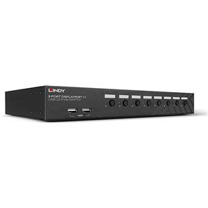 Lindy 39540 Switch KVM 8 Port DisplayPort 1.2, USB 2.0 & Audio - Montaggio Rack Nero con Tastiera Tedesca