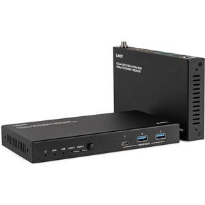 Lindy 100m Cat.6A HDBaseT Extender con 2 Host USB 3.2 - Gen 1 e HDMI 4K60, Nero