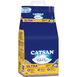 CATSAN Ultra Plus Lettiera per Gatti Agglomerante in Argilla Naturale - 15L (ca. 15,4 kg) Estremamente Assorbente