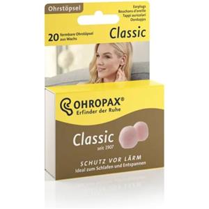 OHROPAX Classic Tappi Auricolari in Cera Modellabile - 20 Pezzi, Comfort Ottimale per Sonno e Relax