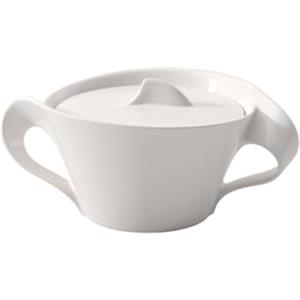 Villeroy & Boch NewWave Zuccheriera in Porcellana Premium Bianco, 260 ml, Design Asimmetrico con Coperchio