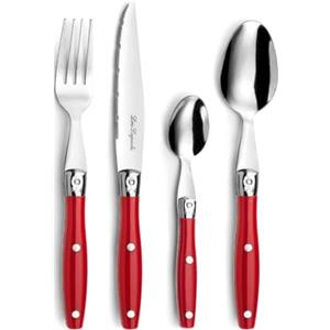 Amefa Comptoir Servizio Posate 24 Pezzi in Acciaio Inox con Manico Rosso per 6 Persone