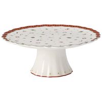 Villeroy & Boch Toy's Delight Alzata per Torta Rotonda in Porcellana, 21 cm, Bianco/Multicolore con Motivo Natalizio