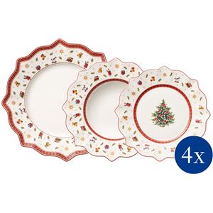 Villeroy & Boch - Toy's Delight Dinner Set 12 Pezzi Rosso,Bianco, Adatto per Microonde, Piatto Ceramica Natale, Piatto Fondo, Decorazione Natalizie, Set di Stoviglie, Servizio, Porcellana Premium