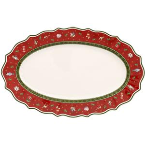Villeroy & Boch Toy's Delight Piatto da Portata Ovale in Porcellana Premium 39cm - Rosso e Bianco, Adatto per Microonde, Design Natalizio