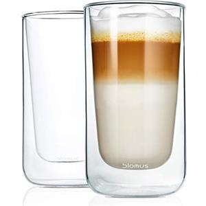 Blomus Bicchieri Termici da Latte Macchiato NERO - Set da 2, Doppia Parete, Vetro Termico, 320 ml