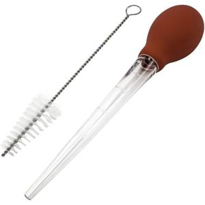 Westmark Pompetta per Arrosto in Plastica con Spazzolino di Pulizia - Lunghezza 28 cm, Capacità 30 ml, Rosso/Trasparente