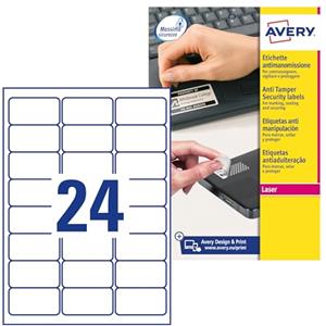 Avery L6146-20 Etichette Bianche Antimanomissione Non Rimovibili in Poliestere - 63,5x33,9 mm - 480 pz