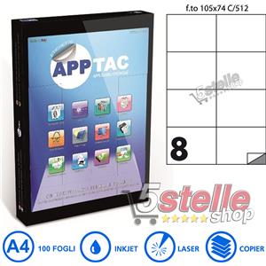 APPTAC Etichette Adesive Bianche 105x74 mm, 100 Fogli, Senza Margine, Adesivo Acrilico Permanente per Stampanti Inkjet e Laser