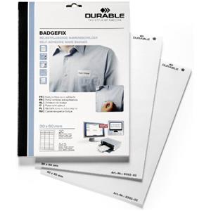 Durable Badgefix - Portanome Adesivo Personalizzabile in Seta Acetata, 30x60 mm, Bianco, Confezione da 20 Fogli (540 unità)