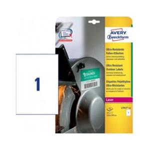 Avery Etichette Ultra Resistenti in Polietilene Bianco - 210x297 mm, 10 Fogli, Stampa Laser