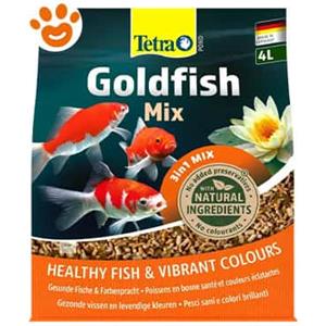 Tetra Pond Goldfish Mix - Mangime Completo per Pesci Rossi da Laghetto, 4 L con Fiocchi, Stick e Gammarus