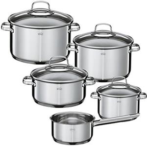 RÖSLE Elegance Set di Pentole 10 pz in Acciaio Inox 18/10 con 6 Pentole, 1 Inserto per Cottura a Vapore e 2 Padelle, Adatto per Lavastoviglie e Piani Cottura a Induzione
