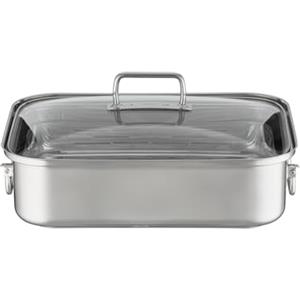 RÖSLE Expertiso Pentola Rettangolare in Acciaio Inox 18/10 con Coperchio in Vetro, per Cottura al Forno e Induzione, Lavabile in Lavastoviglie