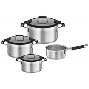 Fissler Viseo Set di Pentole in Acciaio Inox, 4 Pezzi con Coperchi in Vetro, Compatibile con Induzione e Tutti i Fornelli