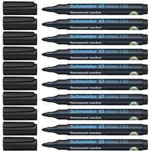 Schneider Maxx 130 Marcatore Permanente Nero Punta Conica 1-3 mm - Confezione da 10 pz