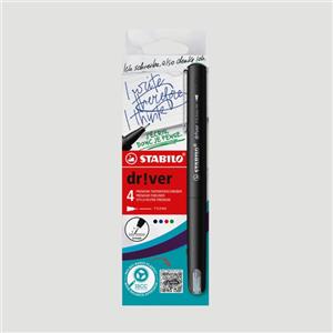 STABILO dr!ver Fineliner Premium - Astuccio da 4 con Tratto Fine (0,4 mm) - Nero, Blu, Verde, Rosso