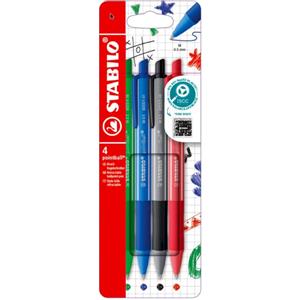 STABILO Pointball Colorful - Penna a Sfera a Scatto 0.5 mm - Pack da 4 Colori Assortiti in Bioplastica