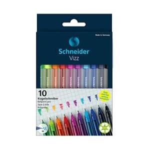 Schneider Vizz - Penna a sfera con cappuccio, tratto medio, corpo in plastica riciclata al 94%, tecnologia Gelco, confezione da 10 pezzi, colori assortiti