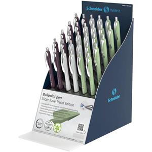 Schneider Slider Rave - Espositore 30 penne a sfera a scatto ricaricabili, tratto XB, inchiostro blu