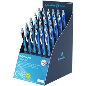 Schneider Slider Rave XB - Penna a sfera a scatto ricaricabile con inchiostro Viscoglide, fusto assortito bianco e nero o blu/nero, confezione da 30 pz