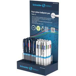 Schneider Take 4 - Penna a sfera 4 colori, inchiostro Viscoglide, 36 pezzi, riempibile
