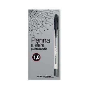 Starline Penna a Sfera con Cappuccio - Punta Media 1 mm - Colore Nero - Fusto Trasparente - Conf. 50 Pezzi