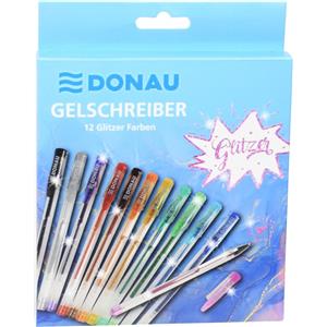 Donau Penne a Gel Glitterate 1 mm - Confezione da 12 Colori Assortiti per Scrittura e Disegno