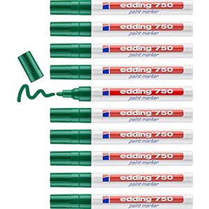 Edding 750 Marcatore a Vernice Verde - 10 Penne, Punta Tonda 2-4 Mm, Resistente al Calore, Permanente, Impermeabile