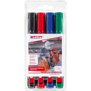 Edding 300 Marcatore Permanente con Punta Conica e Tonda 1,5-3 mm - Astuccio da 4 Colori Assortiti (Nero, Blu, Verde, Rosso) - Resistente all'Acqua e alla Luce