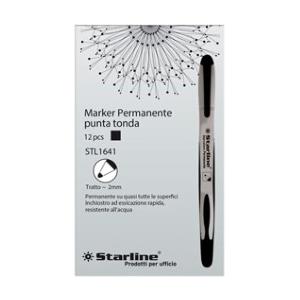 STARLINE Marcatore Permanente Nero Punta Tonda 2,0mm - Conf. 12 Pezzi con Inchiostro Resistente all'Acqua
