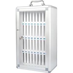 ITERNET Armadietto Portacellulare 36 Posti - 29x19x50 cm - Grigio, Struttura in Alluminio e MDF, Pannello Trasparente e Serratura a Chiave