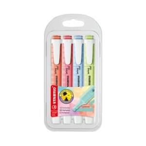 STABILO Swing Cool Pastel - Evidenziatore Punta Scalpello - Astuccio da 4 pz - Colori Rosa Corallo, Fior di Ciliegio, Azzurro Ghiaccio, Lime - Ampiezza Tratto 1 4 mm - Inchiostro a Base d'Acqua